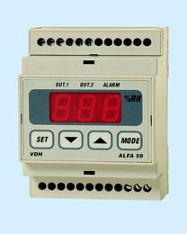 VDH HYGROMETERS/HYGROSTATEN ALFA 59 0224-850552 06-52634163 **Specificaties **Gebruiksaanwijzing **Manual De ALFA 59 is een kompakte drie-traps railhygrostaat met neutrale zone. De ALFA 59 wordt standaard geprogrammeerd met de funktie bevochtigen/ontvochtigen en een minimum/maxiumum alarm. De hygrostaat kan ook met de funktie 3x bevochtigen of 3x ontvochtigen worden ingesteld. De ALFA 59 heeft een bereik van 0/+100% RH met een uitlezing per 1% RH. Op de ALFA 59 kunnen vochtsensoren uit de LC 95/2, RH 95/2 of RH 970 reeks worden aangesloten. De Alfanet 59 is voorzien van een netwerkaansluiting waardoor deze kan worden aangesloten op het Alfanet systeem voor uitlezing en logging op de PC. Bij de Alfa 59 ontbreekt deze netwerkaansluiting. De ALFA 59 wordt rechtstreeks met 230Vac gevoed. Op verzoek kan deze thermostaat ook geleverd worden voor een andere voedingsspanning. Technische gegevens Zie de handleiding. ALFA 59 drie-traps hygrostaat Excl. sensor ALFANET 59 netwerk, drie-traps hygrostaat Excl. sensor Kunt u het gewenste product niet vinden, neem dan contact met ons op. Wij zijn u gaarne van dienst bij storingen of onderhoud aan uw installatie. Prijswijzigingen voorbehouden. Specificaties
