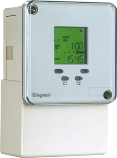 LEGRAND D72 TIJDKLOK ONTDOOIKLOK TIJDSCHAKELAAR DEFROSTIMER ZEITSCHALTUHR 0224-850552 06-52634163 Compacte eenvoud met in-en uitschakeltijd in één beeld. - De AlphaRex D-modellen zijn eenvoudig te progammren tijdschakelklokken. - Door de in- en uitschakeltijden in één beeld te brengen is het zoeken naar de juiste uitschakeltijd bij een bepaalde inschakeltijd niet meer nodig. - Dag- en weekprogramma op alle uitvoeringen - Verlicht display en knoppen - gangreserve 6 jaar Specificaties